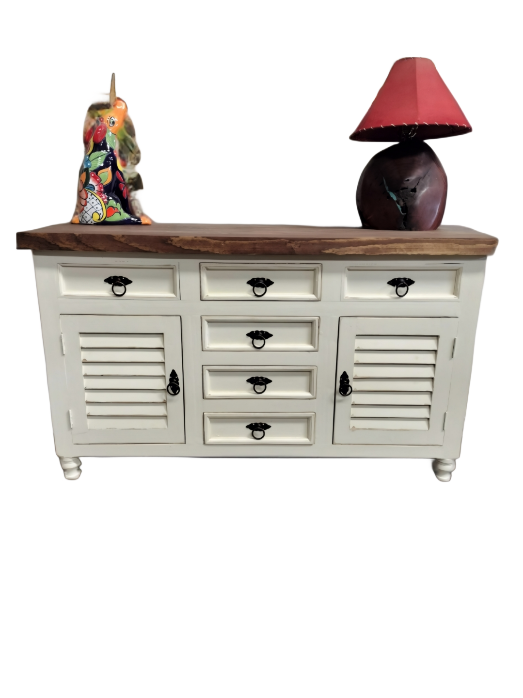 Configuration: Two panel doors + six drawers (top left & right drawers are false)